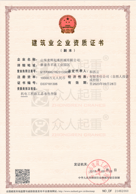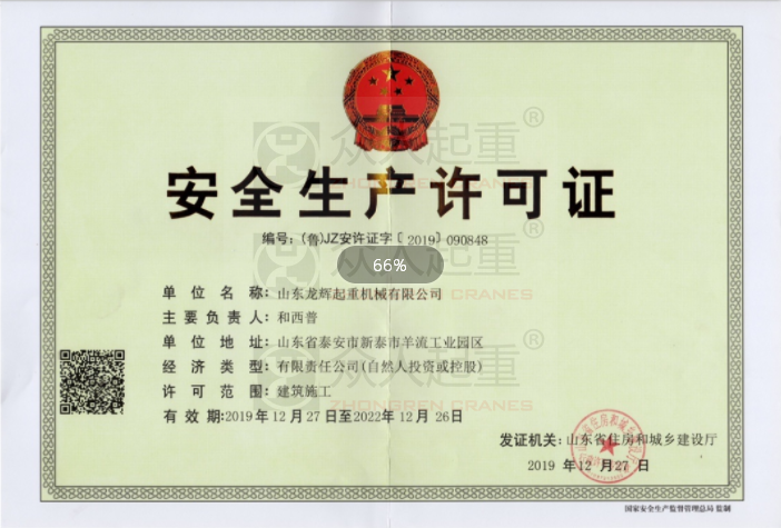 2019年12月27日,山東龍輝起重機械有限公司榮獲建筑施工安全生產(chǎn)許可證。建筑施工安全生產(chǎn)許可證是礦山企業(yè)、建筑施工企業(yè)和危險化學品、煙花爆竹、民用***生產(chǎn)企業(yè)必備的一個證件,它和企業(yè)資質(zhì)聯(lián)系在一塊,取得建筑施工資質(zhì)證書的企業(yè),必須申請安全生產(chǎn)許可證,方可進行招投工作來接相應工程,兩個證件是有機整體。 自公司獲得建筑業(yè)企業(yè)資質(zhì)證書以來,公司的業(yè)務范圍擴大了百分之二十以上,但是由于沒有建筑施工安全生產(chǎn)許可證還是讓很多項目無法得以實施,F(xiàn)在能夠獲得企業(yè)安全生產(chǎn)許可證,使得山東龍輝起重機械有限公司自成立以來的企業(yè)收獲、戰(zhàn)略及發(fā)展規(guī)劃更加圓滿,對未來發(fā)展壯大堅定了信心。 山東龍輝起重機械有限公司致力于打造起重行業(yè)領先的產(chǎn)品研發(fā)、生產(chǎn)和服務,現(xiàn)階段在公司領導班子的帶領下不斷完善增加各項制度、產(chǎn)品種類和服務領域,以精良的產(chǎn)品、優(yōu)質(zhì)的服務、不凡的品質(zhì),在持續(xù)提升客戶滿意度的發(fā)展理念上走向新的高度。 觀望未來,龍輝集團將繼續(xù)保持嚴謹?shù)墓ぷ髯黠L、踏實的工作態(tài)度,以“市場為導向、以質(zhì)量求生存”為經(jīng)營理念,以“打造可持續(xù)性發(fā)展的品牌起重設備企業(yè)”為愿景,繼續(xù)提升項目管理能力,追求精益管理,為客戶提供高質(zhì)量的產(chǎn)品的同時,為客戶提供優(yōu)質(zhì)的服務,與客戶共同發(fā)展! |