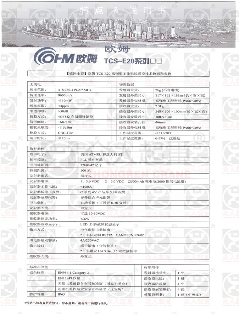 摘要: 歐姆無(wú)線遙控器TCS-E20系列技術(shù)參數(shù)