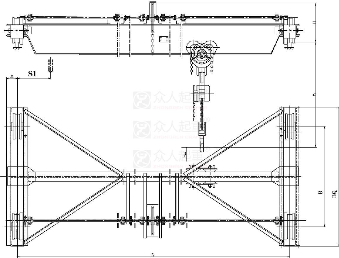 SDQ型手動單梁起重機(jī)產(chǎn) 品 說 明 手動單梁懸掛起重機(jī),系由橋梁、大車運(yùn)行機(jī)構(gòu)及手動單軌小車等主要部 手動單梁懸掛起重機(jī),系由橋梁、大車運(yùn)行機(jī)構(gòu)及手動單軌小車等主要部分組成,整個起重機(jī)是懸掛在工字鋼軌道的下翼緣上行走,大、小車運(yùn)行均由手動鏈條驅(qū)動。 本產(chǎn)品適用于搬運(yùn)量不大且不甚講究效率和速度的無電源的倉庫、車間或檢修設(shè)備等處。 本產(chǎn)品起重量有0.5、1、2、3噸四種,跨度為3-12米。 |